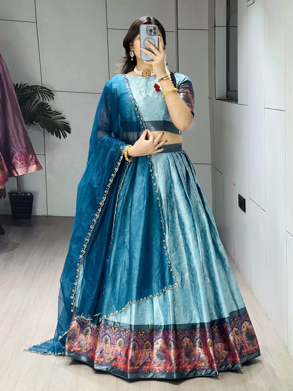 Shimmer Organza Lehenga Choli with Zari & Paithani Dupatta